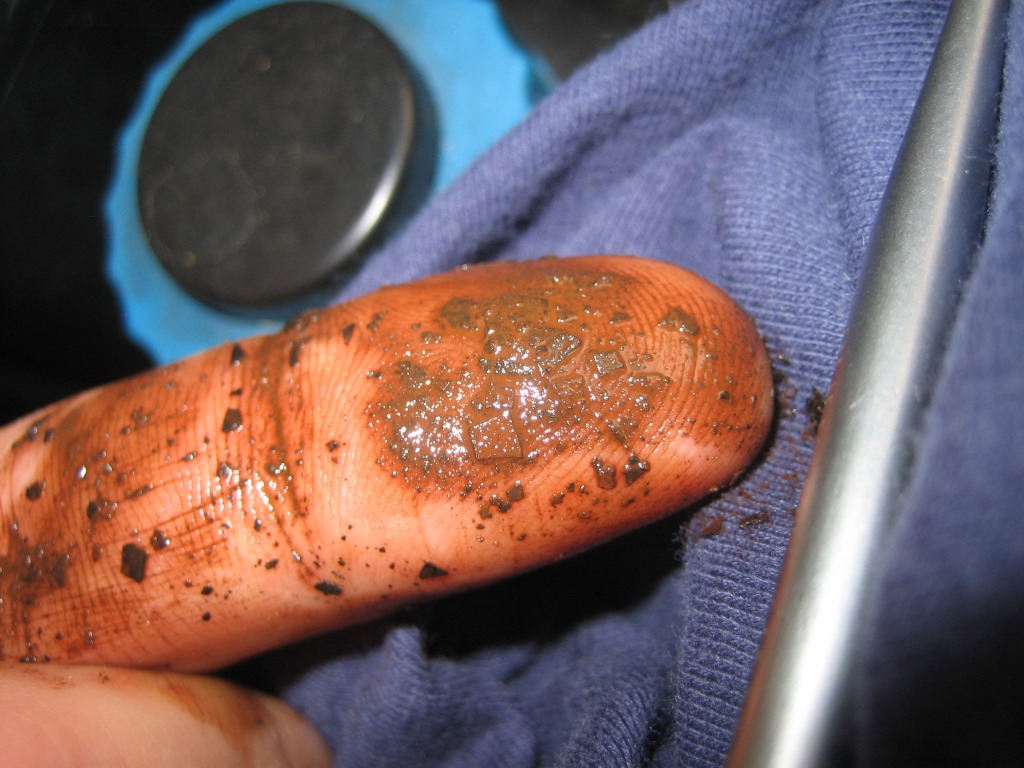Я не знаю что это, но предложение такое - набери этой фигни из системы и садись в разных баночках пытайся это растворять. Для начала пробуй варианты общие с лимонной кислотой, спрайтом, пепси...