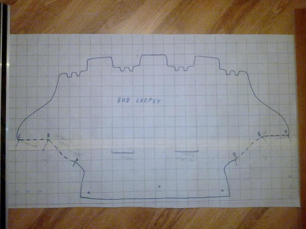а вот что я нарыл. перерисована с оригинала и масштаб дан. Это защита,которая идёт с завода, поэтому коробку передач не закрывает. Она профильная, поэтому рисовал из 3-х частей. Соединения там, где пунктирная линия (и там же загинается на 90 градусов вверх). Детали на рис. 12 и 13 тоже сгинаются по пунктирной линии, угол определяется по рис. 11. Они расположены под 90 градусов вверх относительно рис. 1. ( места соединений показал буквами). Все отверстия лучше делать по месту( тем более, что на моём рисунке они кривые, незнаю как это получилось). Думаю из целого листа этот девайс изготовить сложно.Крайние отверстия на главном фото крепятся не к подрамнику, а к дополнительному железному кронштейну. Нарисовал клетки по 50 мм. По ним легче делать.