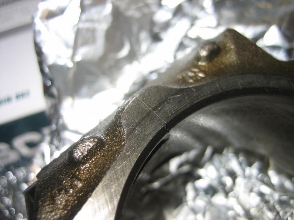 Кроме сбитого угла у шатунов 1-го и 4-го цилиндра (2-3 ещё не смотрел), фото тут http://forum.audi80.ru/download/file.php?id=2963&mode=view, есть износ юбки шатуна. У четвёртого цилиндра износ вроде побольше чем у первого (с одного боку). Мерил в самом тонком месте. Получил 80.95мм. Странно, но износ не на краю юбки и не над кольцами, а на юбке ближе к кольцам. Почему износ в этом месте (а не с низу юбки)? Греется и расширяется сверху? Это критично? Может стучать? (на стенках 4-го цилиндра износа вроде не заметил).