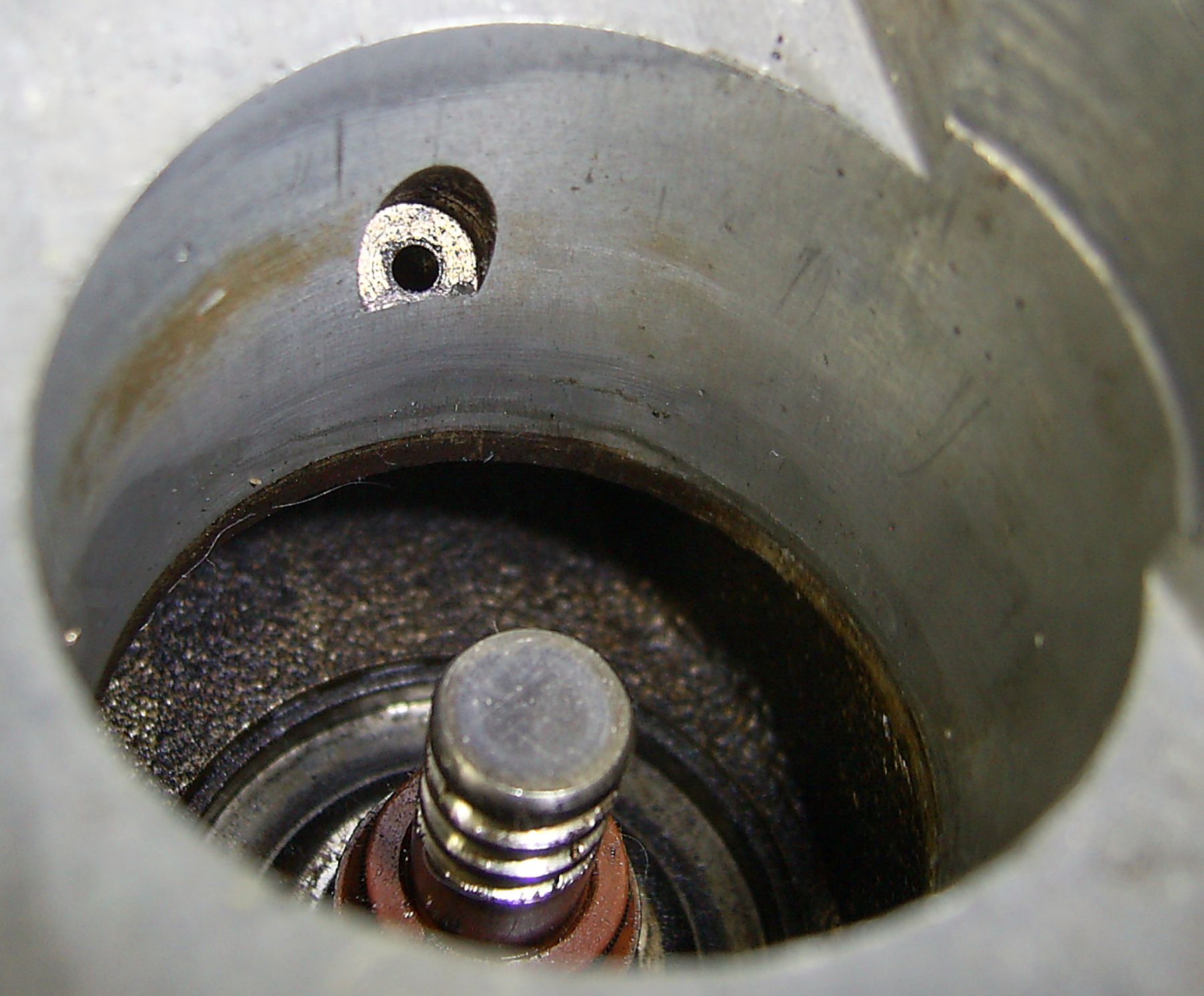 Вот на фото видно износ алюминия в верхней и нижней части колодца, он совсем небольшой но этого достаточно. Большие обороты, некачественное или неправильное масло, перегрев двигателя, большой пробег и особенно постоянно стучащий гидрик может махом испортить гбц.