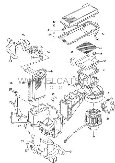 Чтоб не получилось как у меня, до заказывать......... заказывайте сразу и резиновую прокладку ( на фото красными стрелочками отмечено где она устанавливается ) вот её номер - 321 819 017 на рисунке она под номером 14, так как это отдельный элемент с радиатором она не поставляется, а закупается отдельно.