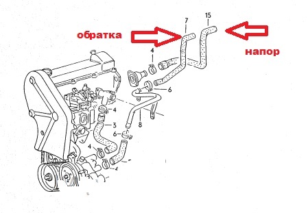 Отсоединяешь патрубок от печки,тот который ближе к аккумулятору.Снимаешь крышку с расширительного бачка и дуешь в него ртом,создавая давление