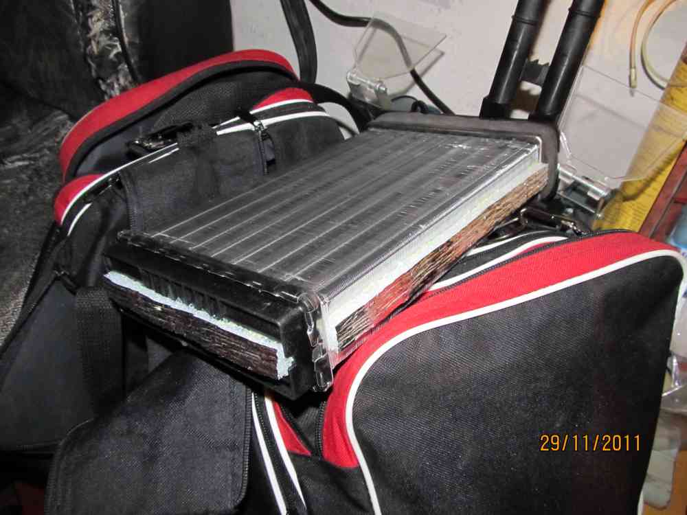 Сегодня в 9.00 работа началась, эту процедуру одолел как ни странно на одном дыхании , радиатор проклеил по бокам и с низу 8 миллиметровым изолоном, подождав 15 минут пока клей "момент" схватился , аккуратно с небольшими усилиями вставил в корпус печки и прижал с верху двумя шурупами. Печку установил на своё место, торпеду тоже быстро поставил , проводку связал в аккуратные пучки, в тросики со шприца закапал масло, чтоб снизить трение тросиков при регулировки заслонок - это себя оправдало на все 100% , при повороте ручек управления заслонок ход стал намного мягче без каких либо усилий, особенно у меня хандрила крайняя с право крутилка, но сейчас всё окей, антифризом думаю заполнить непосредственно сначала радиатор печки , а потом уже подсоединю патрубки, чтоб снизить к минимуму завоздушевание системы ... На днях будет испытание ... О результате отпишусь....