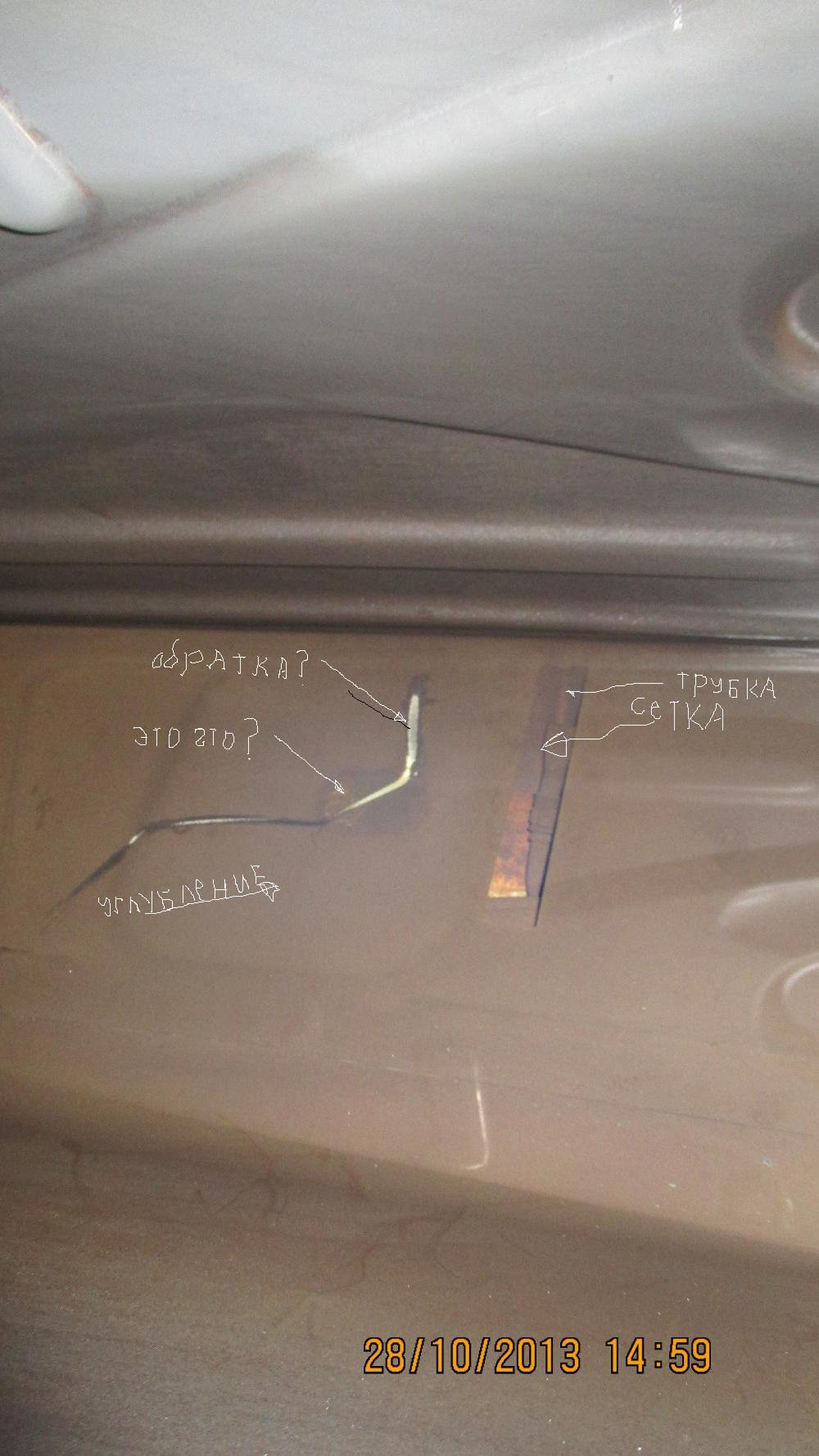 Чистил датчик уровня топлива, заглянул в бензобак.Откуда такой налёт белый на баке, и можно ли его как-то почистить?Не особенно он оттирается. И подскажите назначение трубок в баке.Вижу трубка идёт по низу бака и потом куда-то по стенке вверх поднимается.Я так думаю что это обратка.Так же по центру бака какое-то углубление, там видна трубка, Это подача?