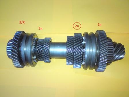 Слева направо на фото все надо стянуть используя съемник и снимая и запоминая стопорные кольца чтоб добраться до шестерни второй передачи.