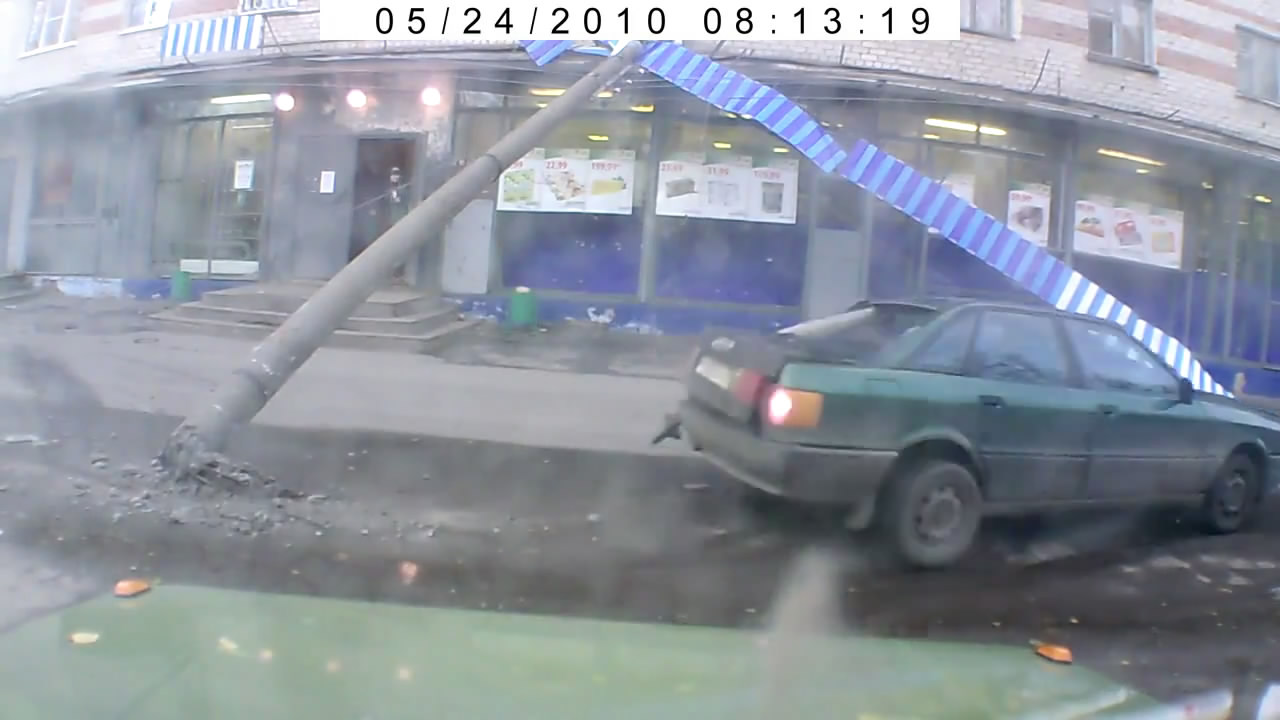 Молодчага:) Столбик срубил, поглядел и уехал.