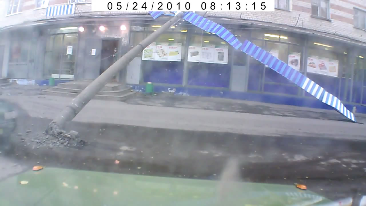 Оно цело. Задок то не упавший когда он уезжает после того как осмотрел столб.