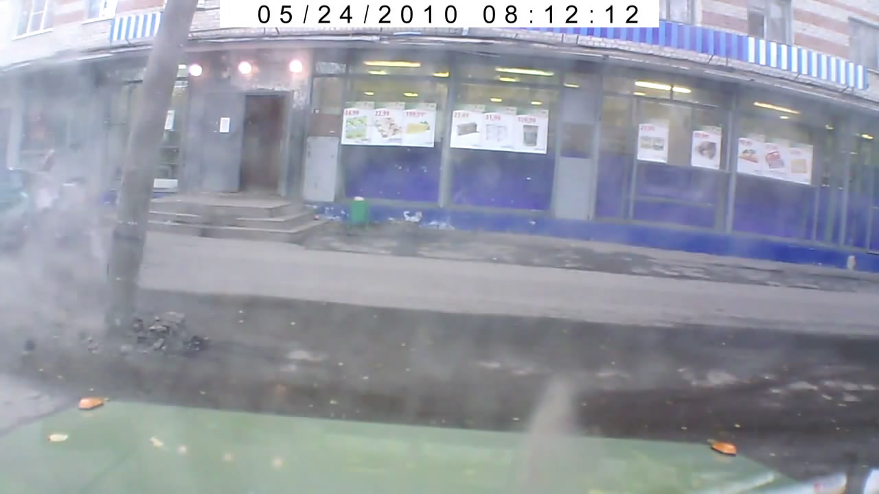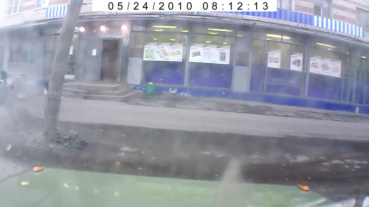 А мне кажется это запаска вылетела, удар как раз в нее был, а если колесо, то оно я думаю должно было лететь в другую сторону, а здесь четко из багажника в сторону магазина...