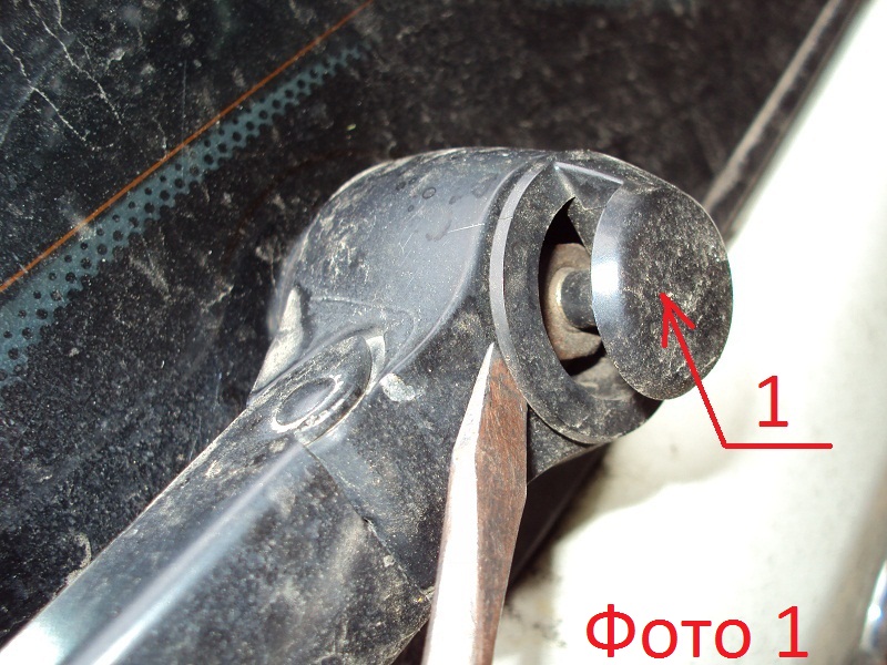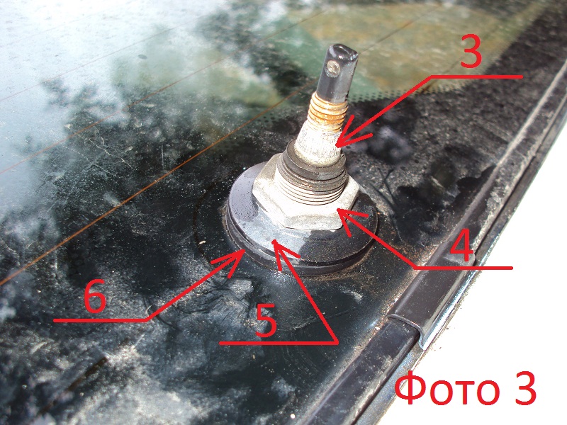 2. Далее головкой на 13 откручиваем гайку (поз 2, на фото 2), которая держит сам дворник.Снятие дворника было довольно геморным занятием, несмотря на то, что там шлицы с большой конусностью (поз 3, на фото 3 и фото 13), он должен был бы легко сняться. Но как оказалось, прикипел основательно. Постукивания, пошатывания около минут пяти дали результат. Применить для снятия дворника отвертку или еще что то, как рычаг боязно, стекло может дать трещину! Так что лучше здесь поморочиться и силу особо не применять.