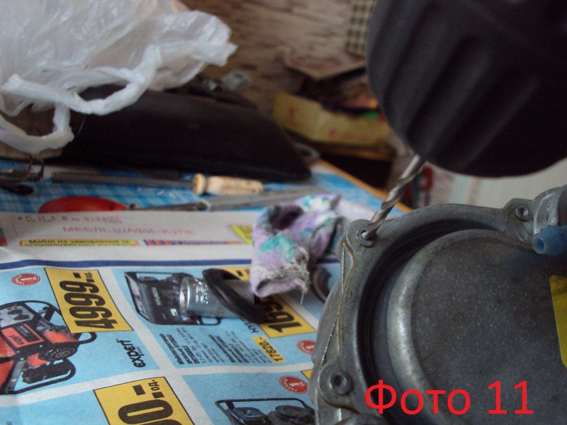 10. Изучаем конструкцию на столе. Сам механизм управления дворником завальцован (поз 14, на фото 10) . Завальцовок 8 шт. 11. Так как потом придется все это как то собирать назад, сразу сверлим во всех завальцовках сквозные отверстия диаметром 2,5 мм (фото 11), и нарезаем резьбу М3 (фото12) . И только после этого сверлом 8-10 мм снимаете завальцовку.