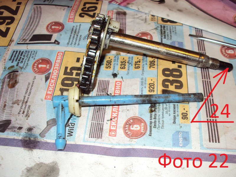 18. Далее по методологии извлечения полого вала извлекаем голубенькую трубочку (поз 9, на фото 21) из полого вала.