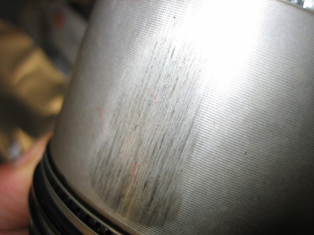 Кроме сбитого угла у шатунов 1-го и 4-го цилиндра (2-3 ещё не смотрел), фото тут http://forum.audi80.ru/download/file.php?id=2963&mode=view, есть износ юбки шатуна. У четвёртого цилиндра износ вроде побольше чем у первого (с одного боку). Мерил в самом тонком месте. Получил 80.95мм. Странно, но износ не на краю юбки и не над кольцами, а на юбке ближе к кольцам. Почему износ в этом месте (а не с низу юбки)? Греется и расширяется сверху? Это критично? Может стучать? (на стенках 4-го цилиндра износа вроде не заметил).