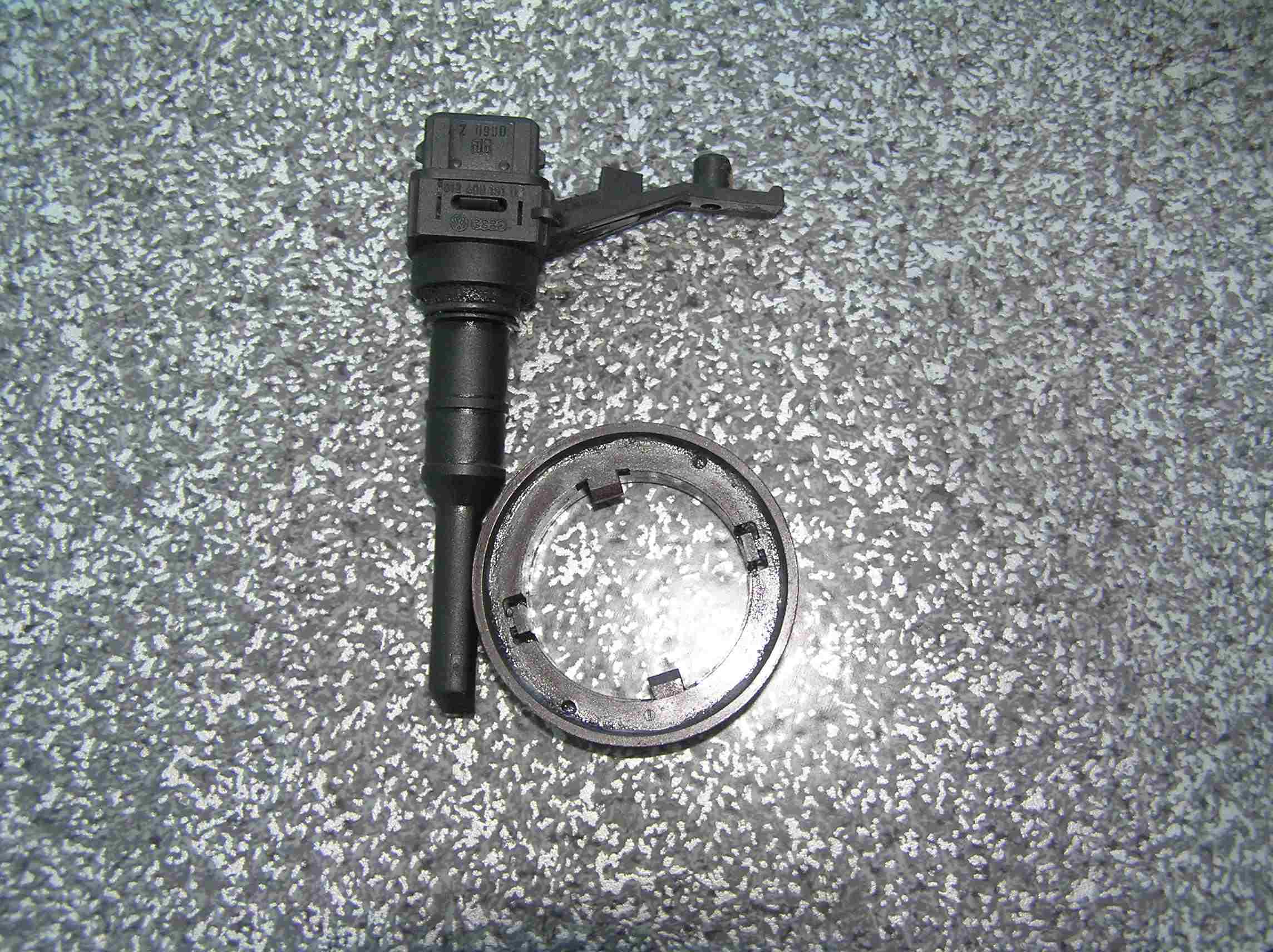 Его нижняя часть намного ниже пробки. Вот смотри, как там все расположено! Только фото 1 снято с поворотом крышки, чтобы видно канал датчика было, так что фото надо повернуть по час. стр., чтобы пробка в горизонт пришла, как на фото 2, а сам датчик еще не весь виден на фото 1 вот он сам.