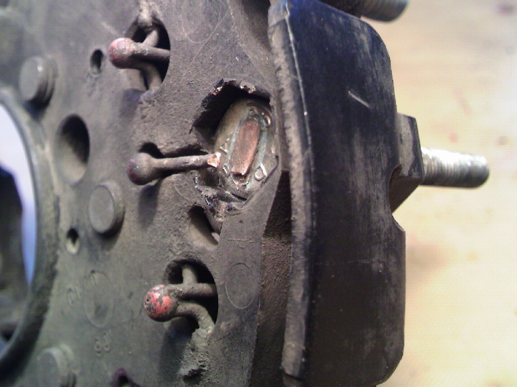 Да, Сергей, при дефектации надо проверить не коротит ли обмотка возбуждения на корпус - Леша писал, что там есть место изгиба, где чаще протирается изоляция. И еще вспомнил - у меня при затяжке гайки на проводе возбуждения (из-за плохо затянутой нижней гайки) провернулся болтик и оборвал внутри цепь. Фото.