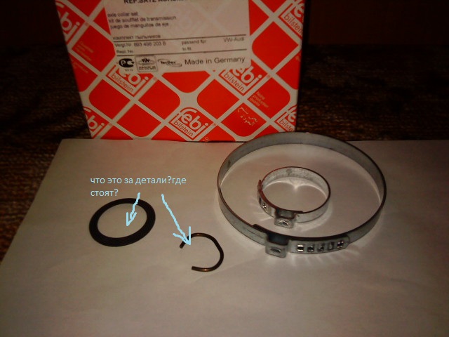 1)Я разбирал ШРУС полностью,вытаскивал сепаратор и шарики,промыл бензином. 2)Продаются специальные клещи для зажима таких хомутов,но можно и пассатижами зажать. На фотке стопорное кольцо,вставляется в паз на ШРУСе и колечко демпферное. |