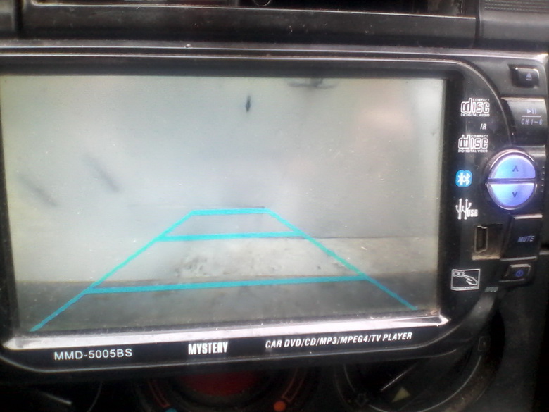 Ну вот пришла новая камера, т.к. проводка уже установлена от предыдущей, той же модели, установка много времени теперь не заняла. Прикрутил по месту и воткнул разъём. Всё заработало при включении зажигания и включении задней скорости (при включенной магнитоле) Фотки выкладываю, в реале видно чётко. на фото, где вплотную подъехал к воротам гаража, видно на фотке плоховато, т.к. прогревался мотор и выхлоп смазывал картинку, после заново сфотографирую. К чужим авто парковаться задом классно. Подъезжаешь почти вплотную (почти - потому что ещё не привык к камере, не совсем доверяю, хоть и видно на экране, что места много, ан нет, пока ещё вылезаю и проверяю. В общем , как то так..