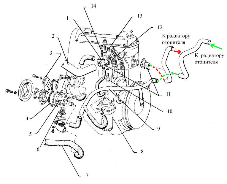 Вот здесь хочу обратить внимание, что там стоят стрелки направления движения ОЖ в печке, но при этом положение шлангов графически показано неправильно и может сбить с правильного пути!!!! Думаю вот так схема будет понятнее и соответствовать правильному подключению. А тебе Андрей, вместо воплей и призывов