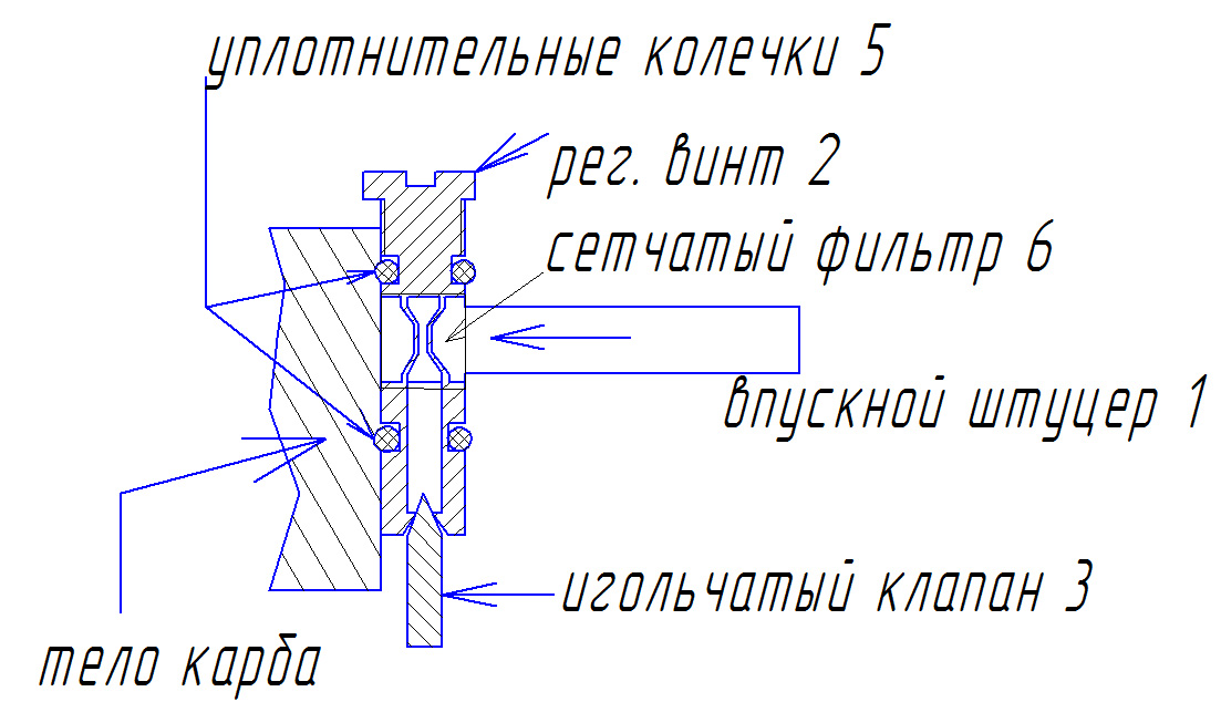 Аааа, не понял сразу, так резинки то новые поставил и смазать надо было их, тогда бы легко завернулись, если резинки те, что надо!!! Клапан никакой притирки не требует и должен держать. Если ты говоришь, что течет вверх, то значит не клапан не держит, а верхняя резинка!!!!!!, если клапан не держит, то переливает уровень в поплавковой камере и льется в диффузор. Там смысл всего устройства сделан вот такой см. рисунок, а сделано для того, чтобы не снимая крышки можно было бы регулировать уровень в камере!