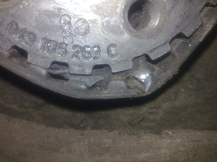 в этом и весь прикол что внешне не видно ничего.стоял оригинал ,а рассыпались внутренние ребра жесткости у центрального (самого мощного М8) болта крепления нижней части кожуха.который