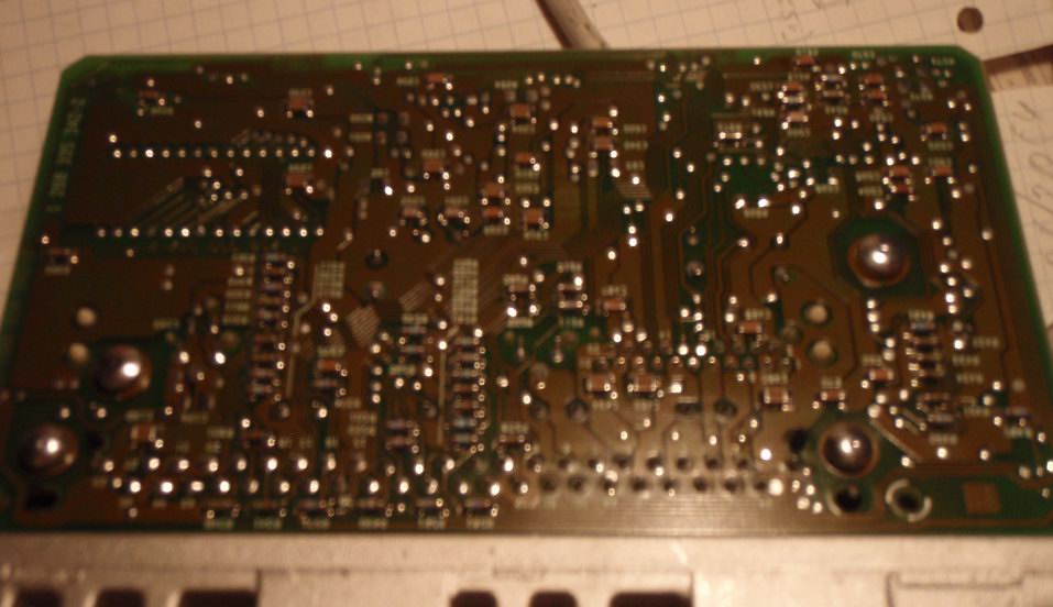 В общем сегодня достал ААЕшные мозги... разобрал... и... и... ииии и сразу огорчился Такое ощущение что отвалился транзистор (абсолютно без помощи моих рук)... да еще эти гадские немцы вкрутили болты с круглой головкой совсем без шлицев ::( И как они вообще работали без этого? В дополнение - похоже это заводской брак или я просто не понимаю... 3я нога (которая не припаяна) она просто лежит на слое лака - т.е. не имеет электрического контакта с дорожкой, в то время как 2 остальных ноги намертво припаяны (да еще к тому же одна из них припаяны не к своему месту).... Я не понимаю где же контроль качества???? Или завелась - ну и ладно пусть ездит... PS Блин была же страна.... и были ОТК, приемки, куча всего отправлялось в брак ради того чтобы полученные единицы получались действительно великолепными... а теперь